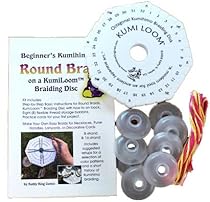 Kumihimo is a Japanese word for a braided cord. A centuries-old art form, now you can do it with the KumiLoom, a modern, easy-to-use braiding disk. This kit contains the KumiLoom personal Kumihimo braiding disk; 8 fantastic EZ-Bob cord-handling bobbins, making the work much easier and faster; a set of practice cords; and a 10 page booklet of instructions for the round braid! In the early 8th century, when the Buddhist religion spread in Japan, people began to use decorative braids in ceremonies. The making of these beautiful, usually silk, braids became an art, and later, people used colorful braids to decorate their clothing, hang ritual banners, lace samurai armor together, tie robes, and decorate weapons. Braids can be found in many cultures, but the Japanese developed the highest order of braiding techniques and complexity. Today, you can create beautiful braided cords in the Kumihimo style with the KumiLoom, the modern braiding disc. The notches provide the correct tension, so you don't need hanging weights. The cord winds up into the individual flexible bobbins, so you keep a compact workspace, but easily and quickly feed cord as you braid. There are 8 bobbins in this kit. So many uses! Your braids can be used to hang jewelry, for coiling on gourds or baskets, or as a purse handle. Braided cords are also used for eyeglass cord, cell phone loops, lanyards, light pulls or curtain ties, clothing, key chains, leashes, zipper pulls, binding, decoration, costumes...there's no end to uses for intricate braided cords.