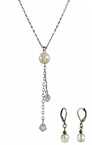 So simple and sparkly.. Necklace is made with faceted fire-polished crystal glass beads. Necklace measures 16" with a 1" extension chain and is made of an antique gold tone plated metal. Dangle part of necklace measures 3". Earrings Earrings measure 1-1/4" tall (including leverbacks) and made with 6mm beads..