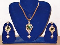 22k Gold Plated Peridot Earring and Necklace Sets Traditional Jewelry From India