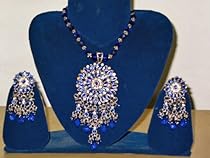 Belly Dance Traditional Jewelry Earring and Pendant Sets Silver Finish with Sapphire Blue Beads (Brand New)