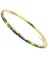 Make your outfit unique with this bangle bracelet that features the cloisonné technique of the far east! This metal bangle is decorated with a floral enamel design in yellow. See set for other color options. Lead free. Zad Jewelry. (Dim: 7 3/4 inches, 4 mm wide).